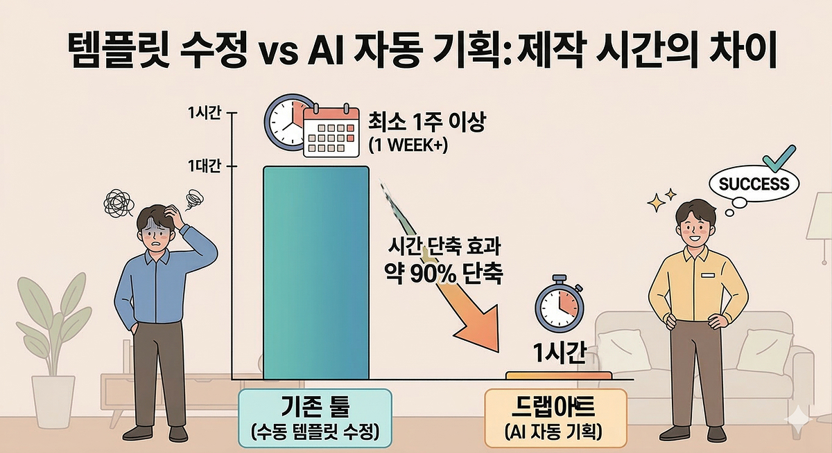템플릿 수정 vs AI 자동 기획: 제작 시간의 차이
