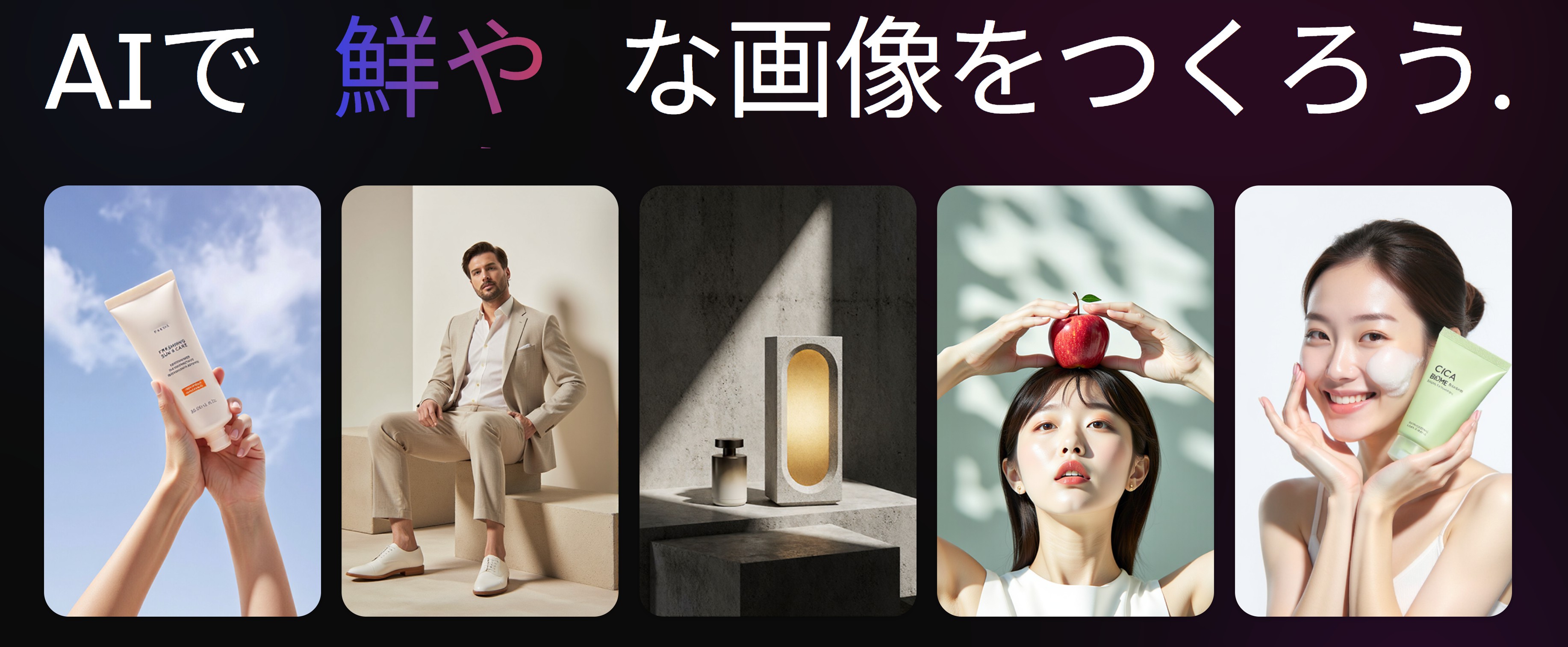 AI広告画像生成からイベントバナー制作まで、マーケティングに必要な全ての画像を素早く作り出せます。