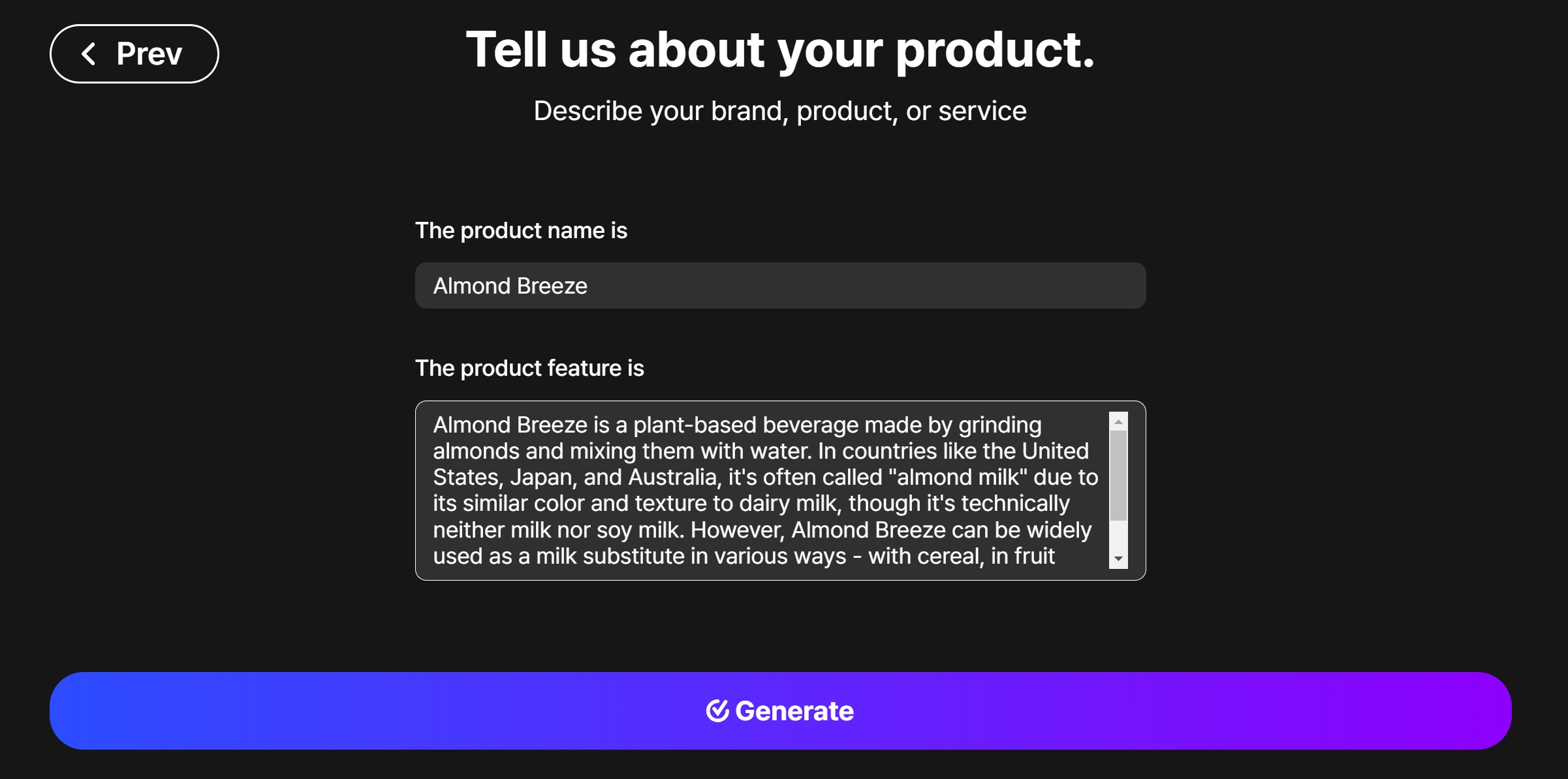 4. The AI automatically analyzes the ad concept and generates both images and copy.