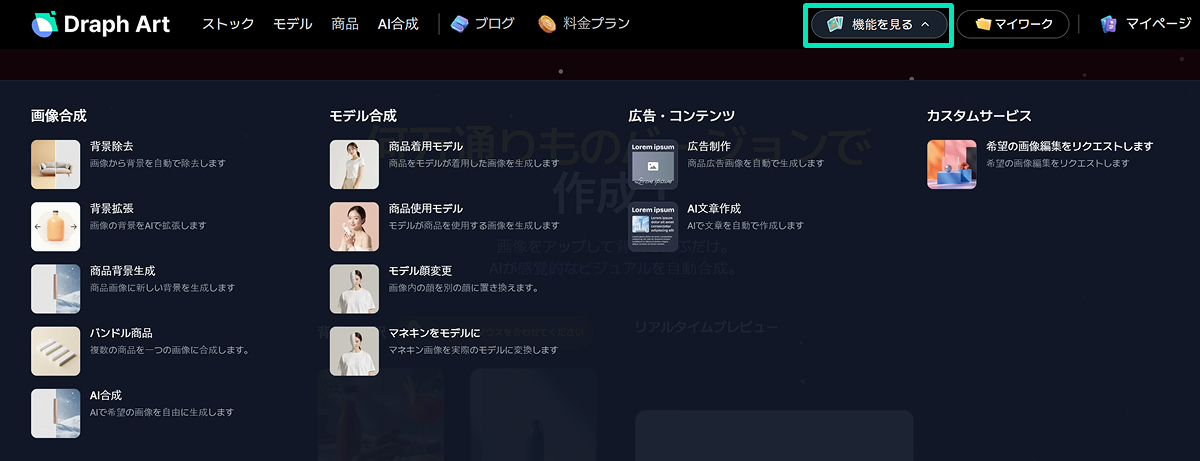 ドラップアート会員なら誰でも無料背景ストックをご利用いただけます。この豊富な背景ストックを活用して新しいAI合成機能を使ってみてください!(ただし、AI合成機能利用時はGBP/BPが必要です)