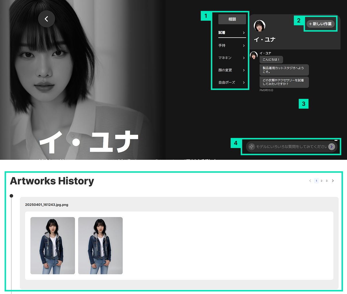 On April 14th, Draph Art's model feature has been significantly updated! While keeping the three existing features (model change, model creation, model face change), new features have been added that allow you to create product wearing cuts and product using cuts. In this post, we'll look closely at how to use these revamped model features step by step. If you're not familiar with the new interface, please check the usage instructions below.