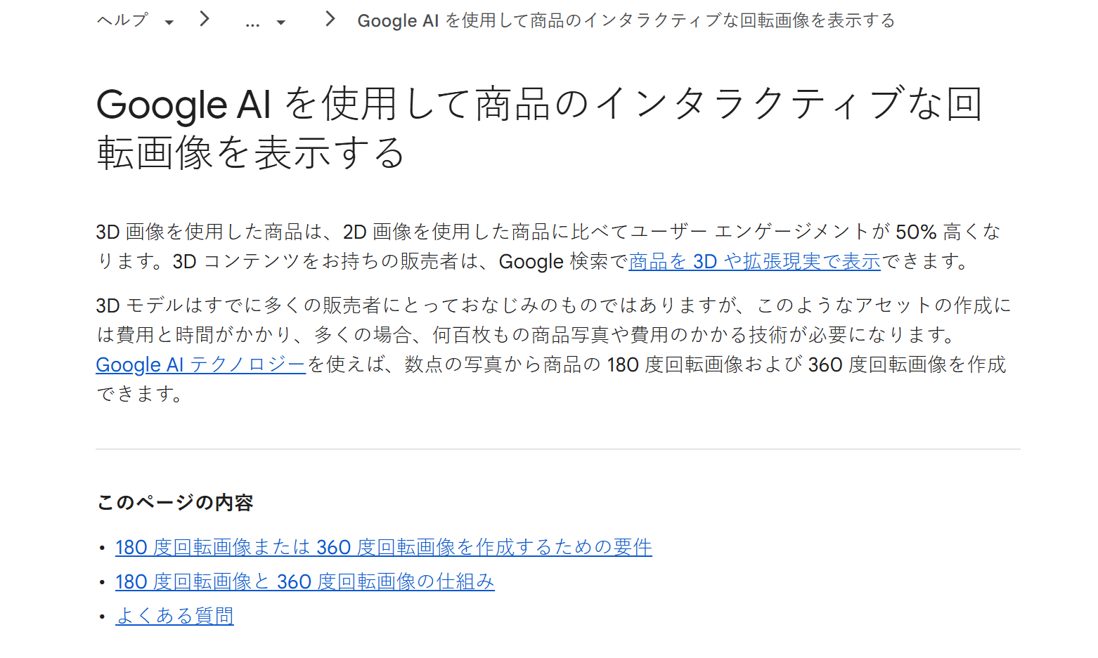 すでにGoogleショッピングでは、AI技術で360度回転画像を提供しています。販売者が商品の前、後ろ、両サイド、上から見た画像5枚だけアップロードすれば、Google AIが自動で360度回転する画像を作ってくれます。お客様はマウスで商品を回しながらすべての角度を見られます。