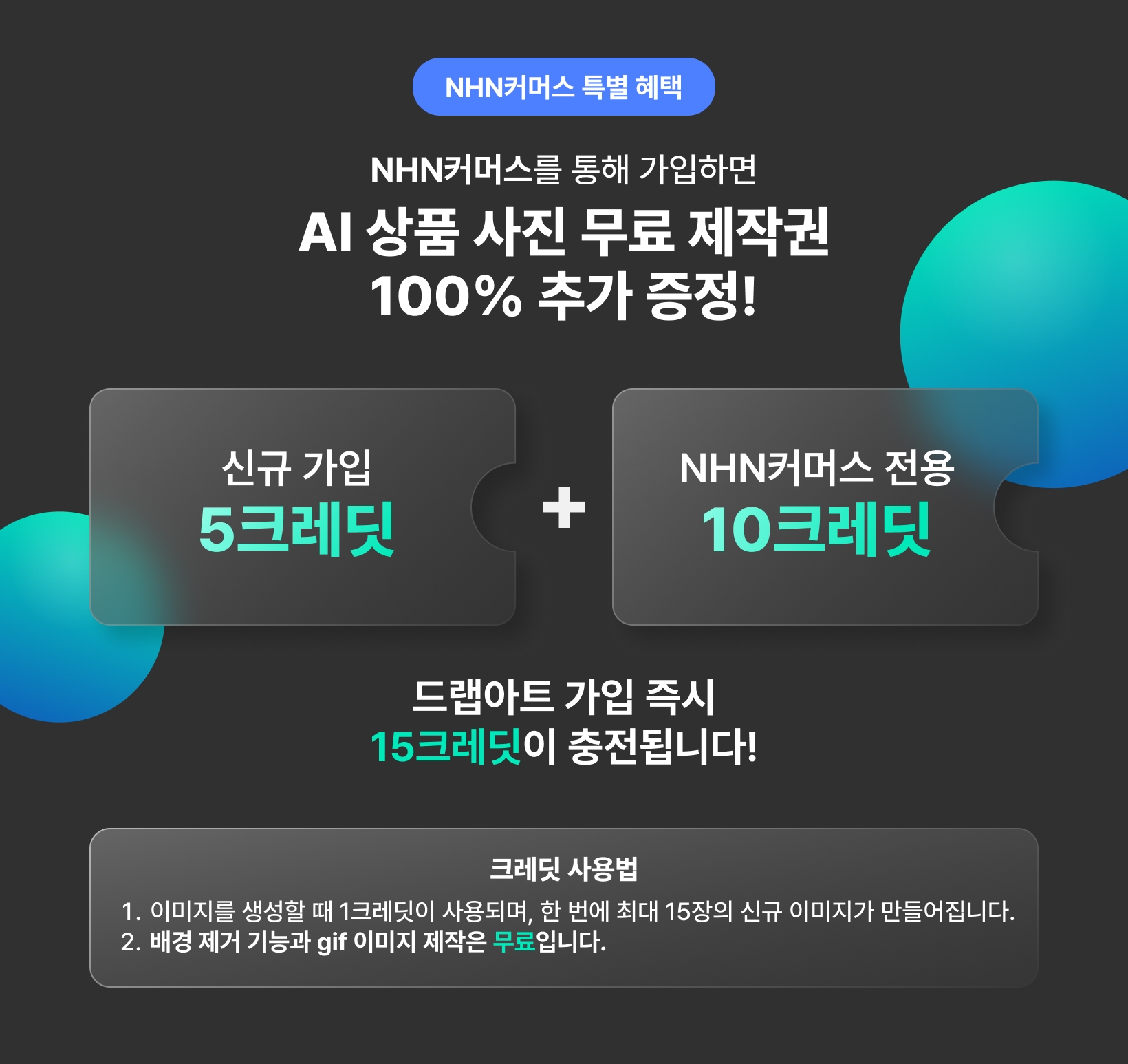 NHN커머스를 통해 가입하면 총 15크레딧 무료 증정