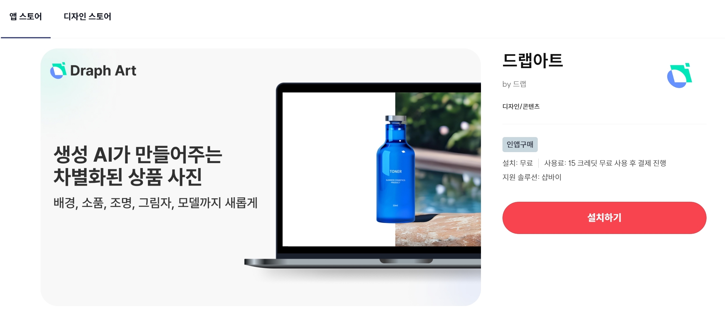 상품 이미지 자동 생성 AI 솔루션 '드랩아트'가 국내 대표 이커머스 플랫폼인 NHN커머스 '샵바이' 앱 스토어에 입점했습니다!