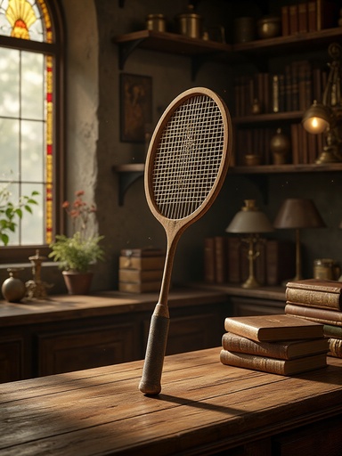 DetailsVintage Stained Glass Window and Antique Wooden Counter