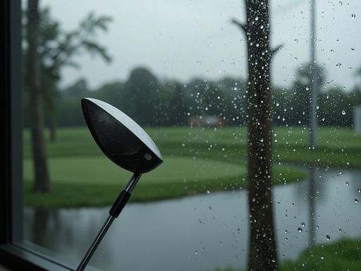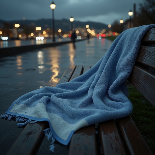 Rainy Urban Park with Cityscape