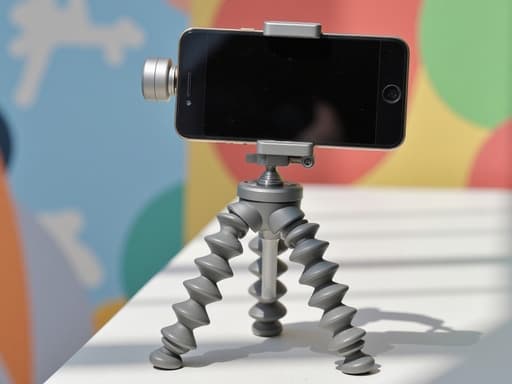 スタンディングモニター、デジタルデバイス、エルゴノミックアクセサリー、ぼかしの入った抽象的なカラフルな背景、柔らかなアンビエントライト、写真のようにリアル