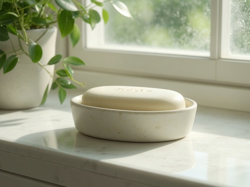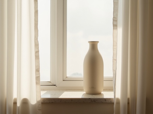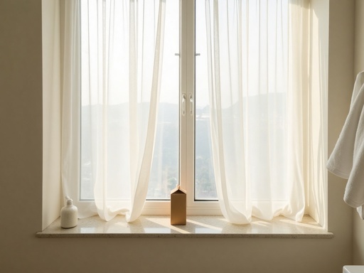 朝日が差し込むバスルームの窓辺