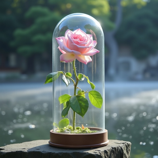 ガラスドームとバラ